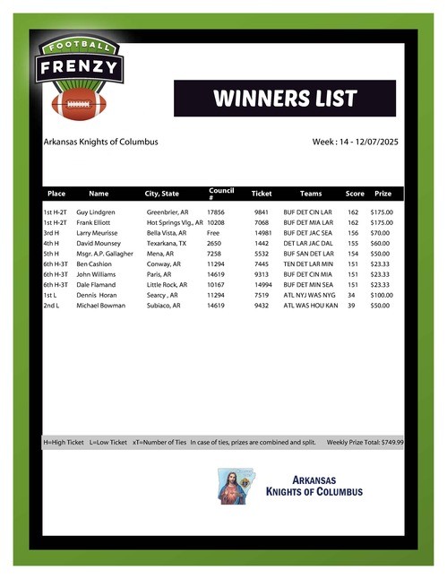 Congratulations Football Frenzy Winners!